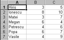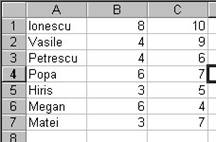 Pe coloana A numele unor persoane, pe coloana B media1 iar pe coloana C media3.