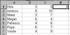 adăugarea unei noi coloane D care va reprezenta media aritmetica a